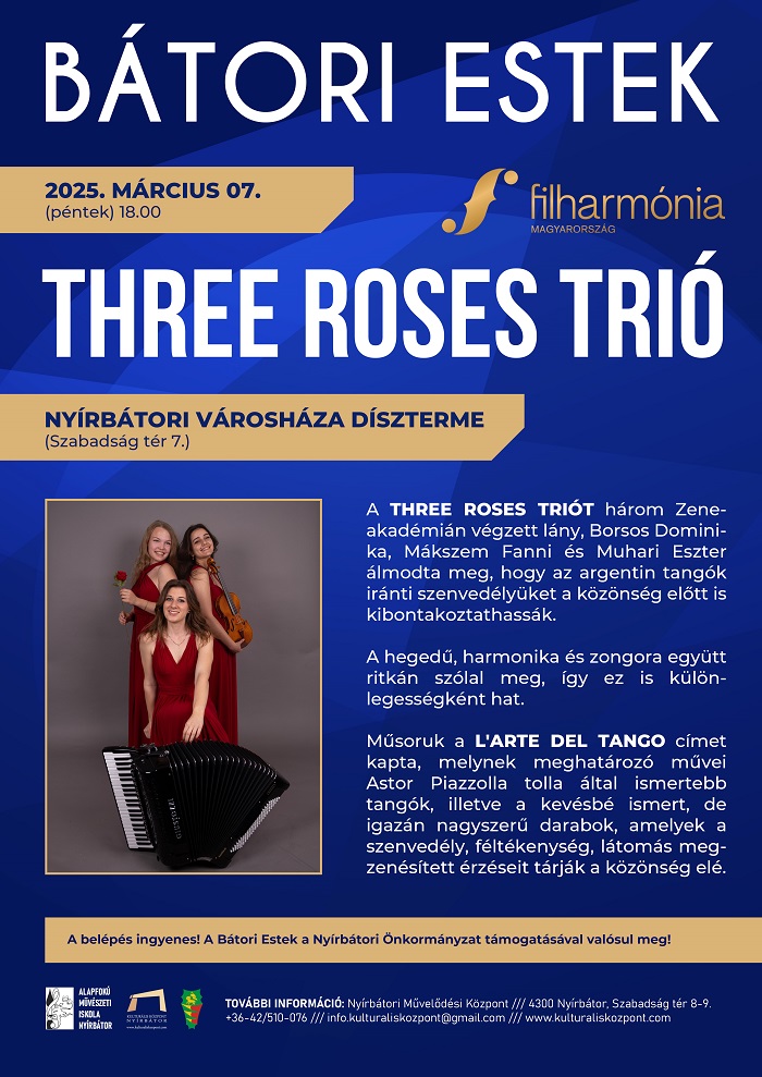 A Three Roses triót három zeneakadémián végzett lány álmodta meg, hogy az argentin tangó iránti szenvedélyüket a közönség előtt is kibontakoztathassák.