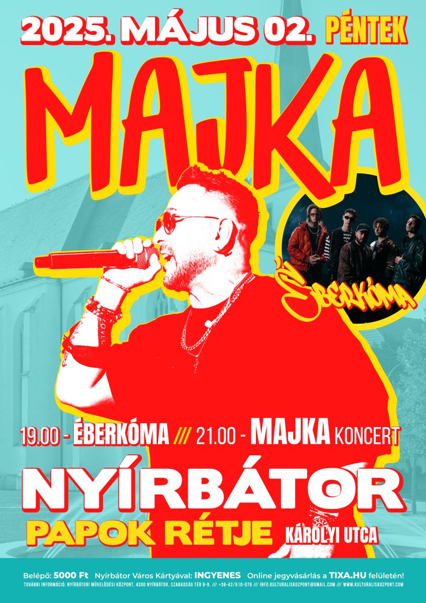 Majoros Péter hazánk egyik legismertebb és legnépszerűbb előadója. Majka 2025-ben ismét Nyírbátorba érkezik zenekarával egy hatalmas show keretében, különleges látvánnyal és hangzással. A koncert során felcsendül majd valamennyi nagy slágere, könnyed, jó hangulatú kikapcsolódást biztosítva a nyírbátori közönségnek.
