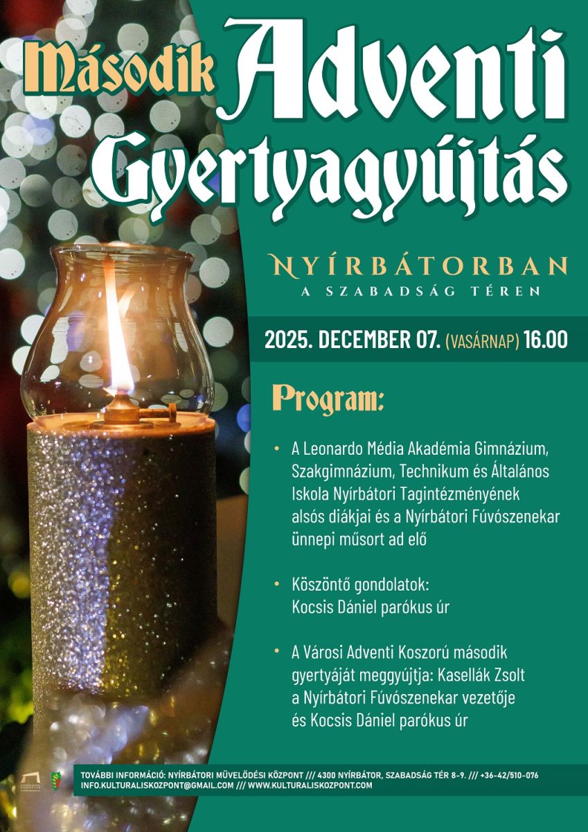 Szeretettel várunk mindenkit a városi Adventi koszorú második gyertyájának meggyújtására.